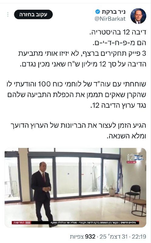 מהדורת 12 ירדה ב 5%